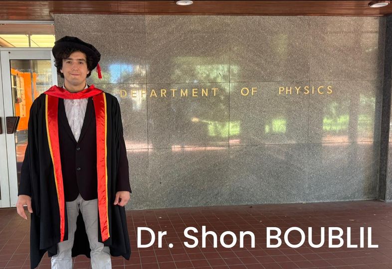 Dr. Shon Boublil. This has been four years in the making. I am a Ph.D. in physics. I would like to thank my family back in Canada, supervisors, colleagues, and friends that have been with me along the way. Your support came in different forms, and I appreciate it all.